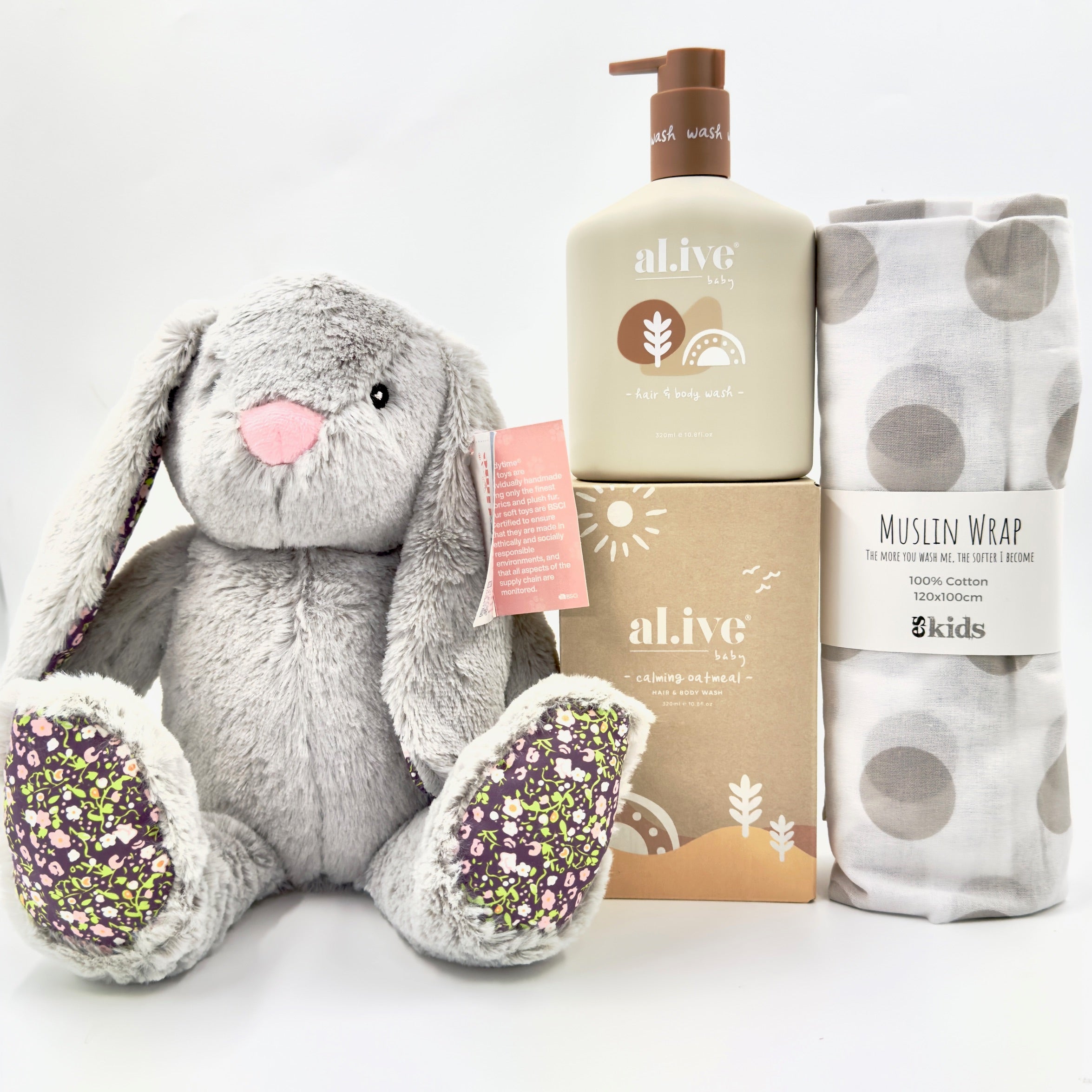 Lucy Bunny in neutral grey - super soft and cuddly and suitable for both a boy or girl