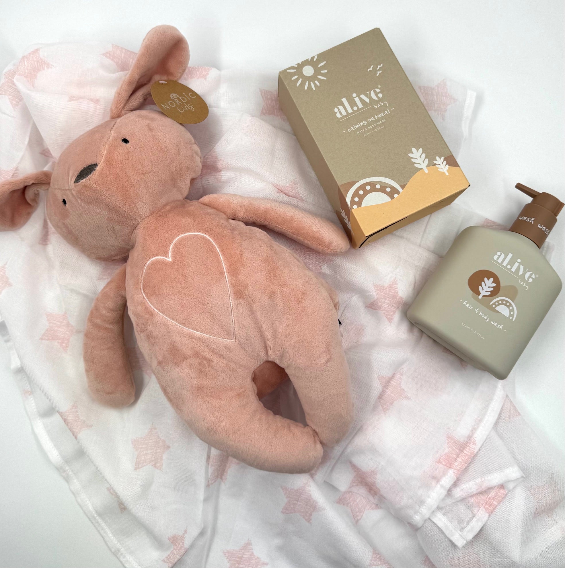 - Nordic Kids pink Freya the Bunny large soft velvet toy with a plush pink chest, perfect for cuddles and snuggles (approx 32cm, see photo 2)